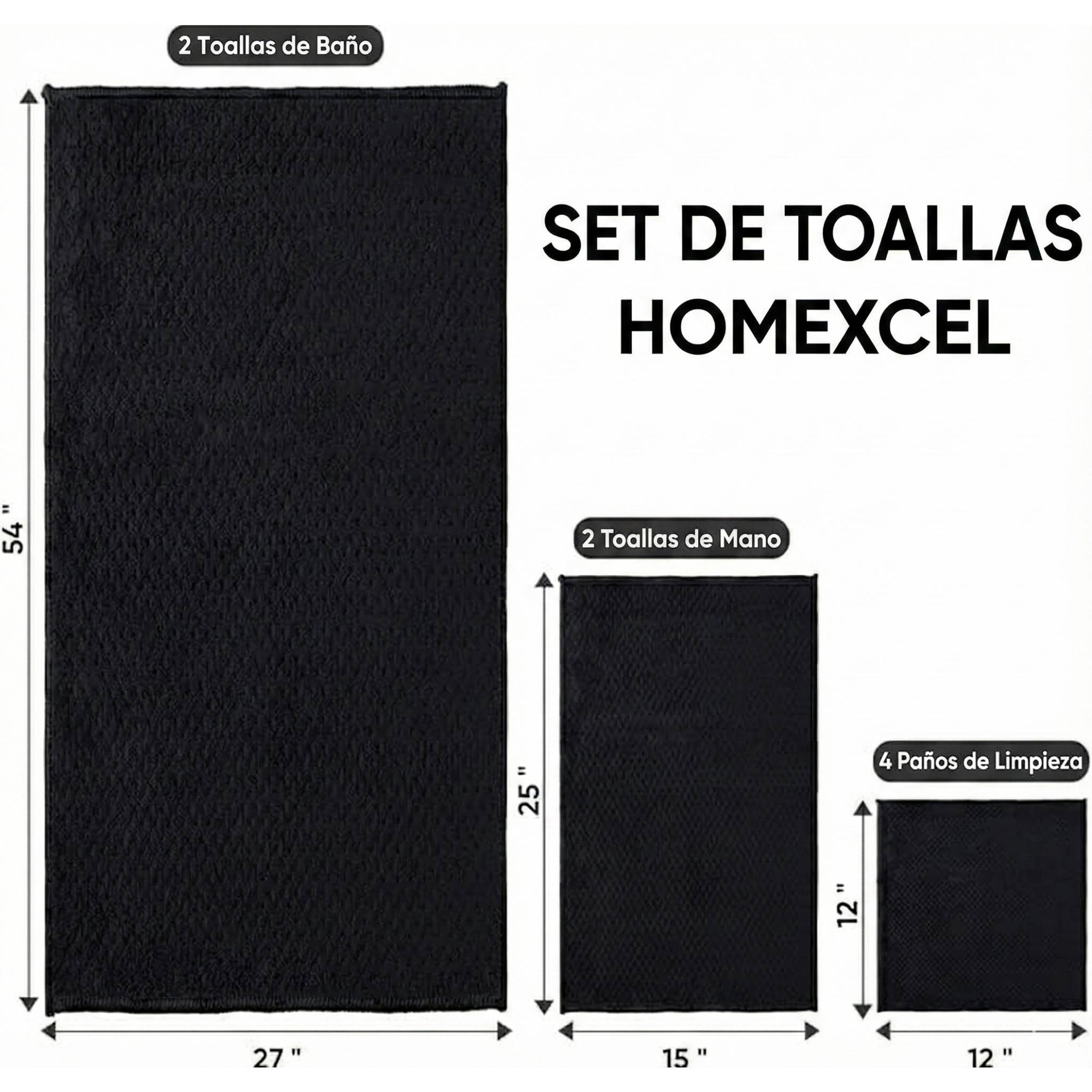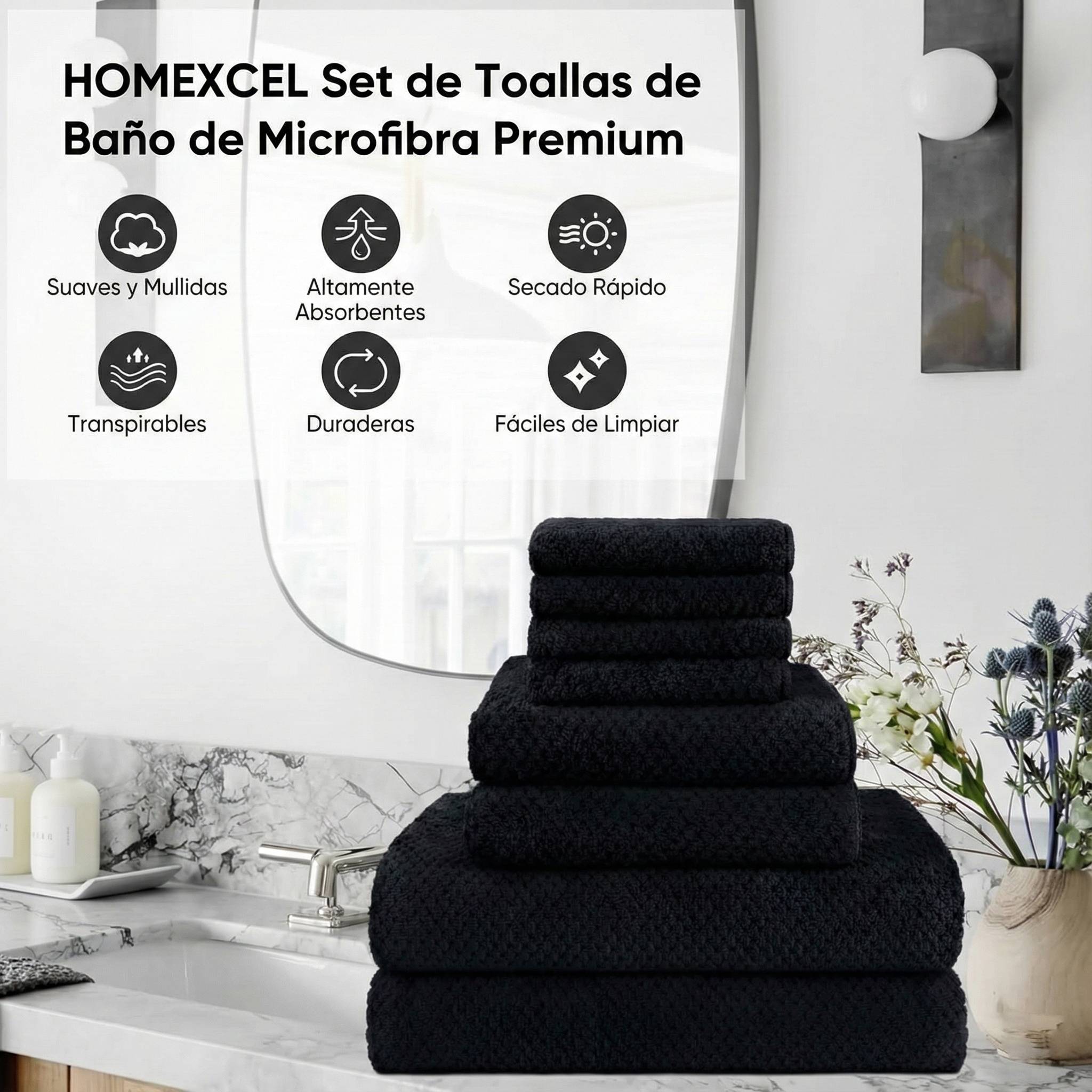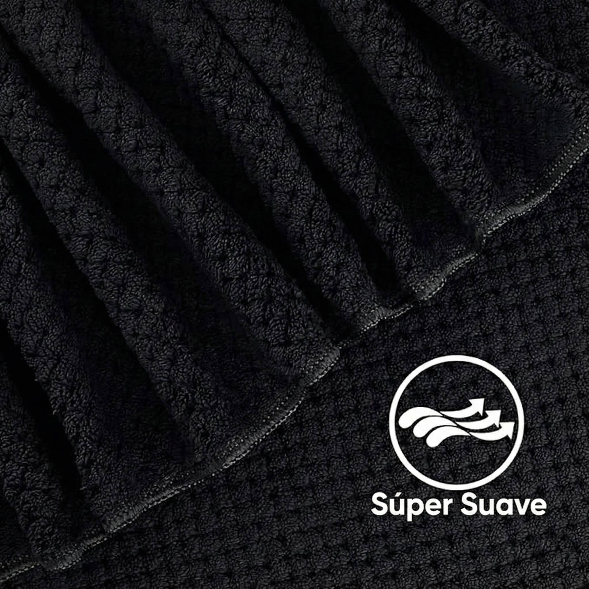 Set de Toallas Premium 8 Piezas – Negro | Microfibra Ultra Absorbente